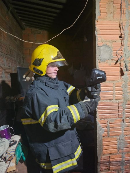 Ao chegarem ao local, os bombeiros encontraram a proprietária da casa e vizinhos já do lado de fora, uma vez que o incêndio havia sido controlado pelos próprios moradores, que utilizaram extintores veiculares e uma mangueira de jardim. A ação rápida da comunidade evitou que o fogo se alastrasse.